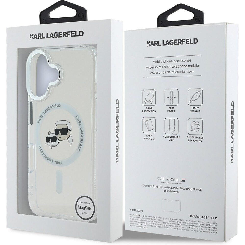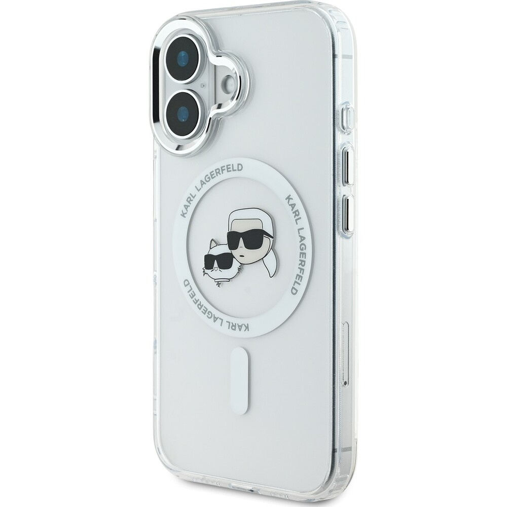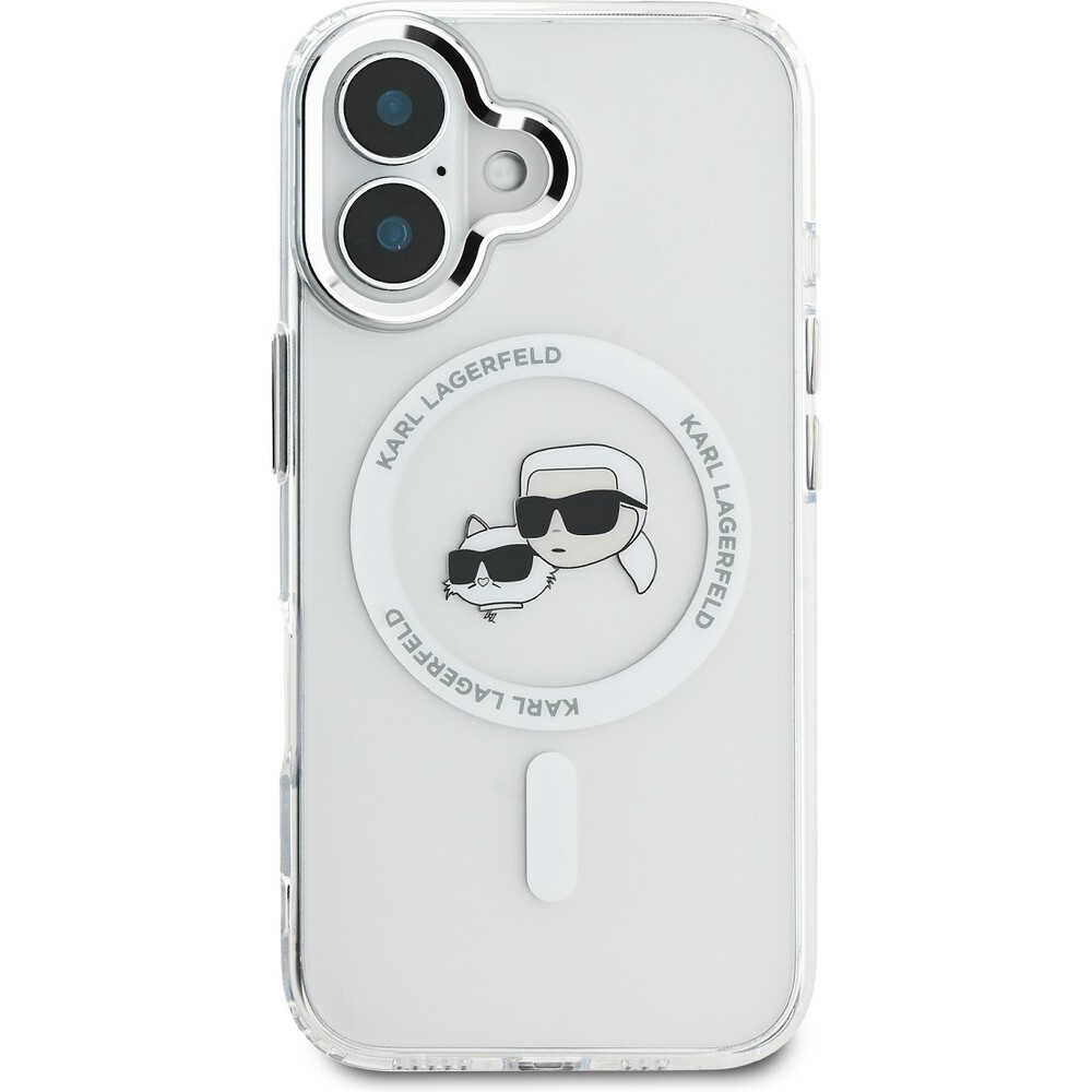 Karl Lagerfeld IML K&CH Heads Metal Frame MagSafe kryt pro iPhone 16 čirý