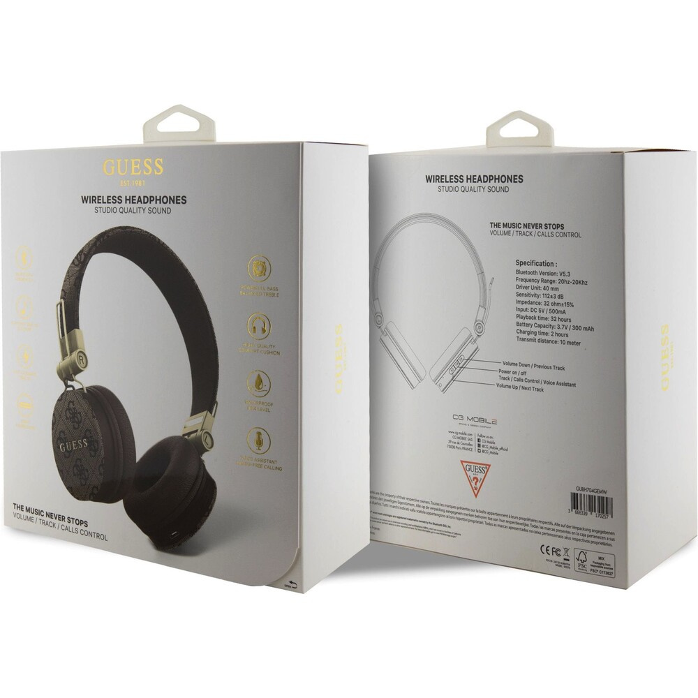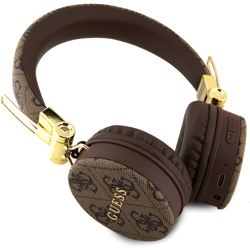 Guess PU Leather 4G Metal Logo BT5.3 Stereo Headphone hnědé