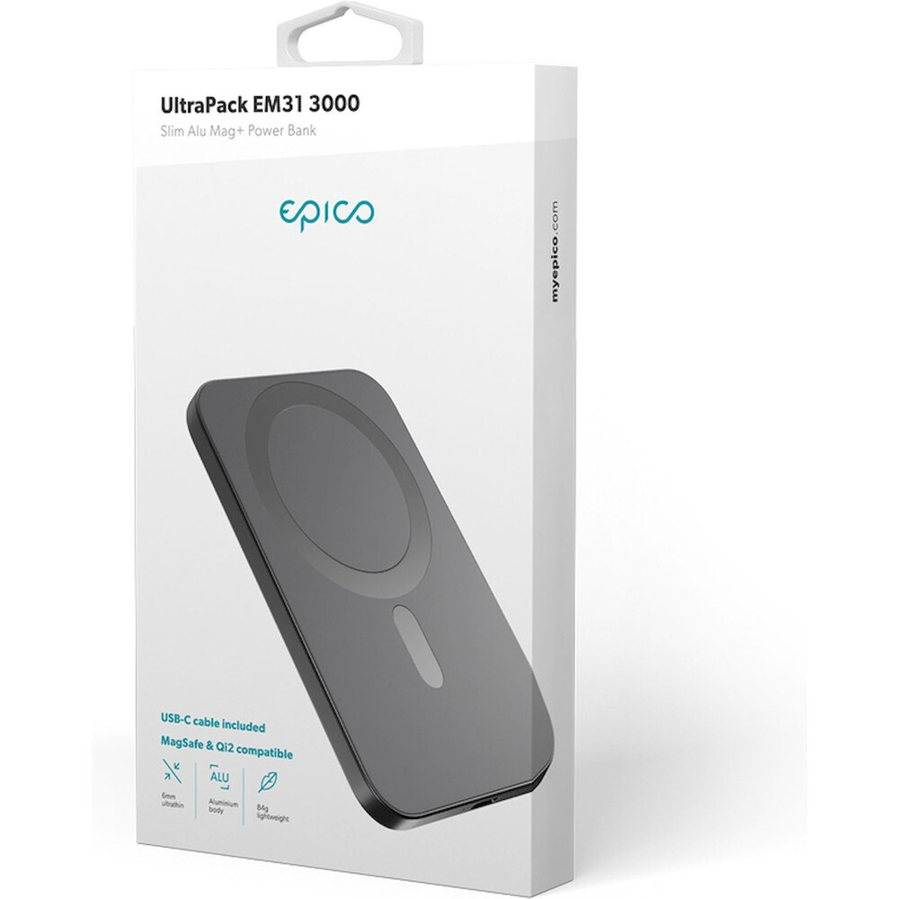 Epico UltraPack Slim 3000mAh hliníková Mag+ bezdrátová powerbanka EM31 vesmírně šedá