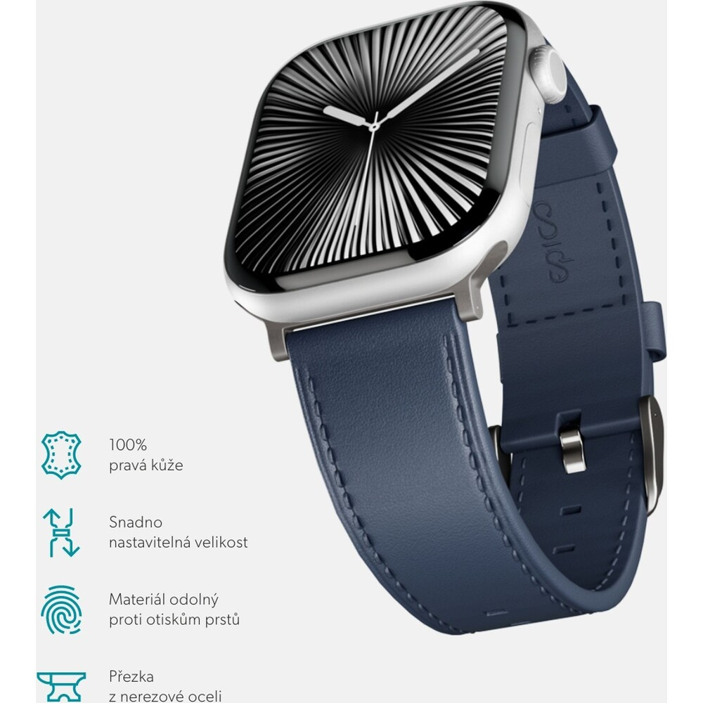 Epico Watch kožený řemínek pro Apple Watch 42/44/45/46/49mm modrý