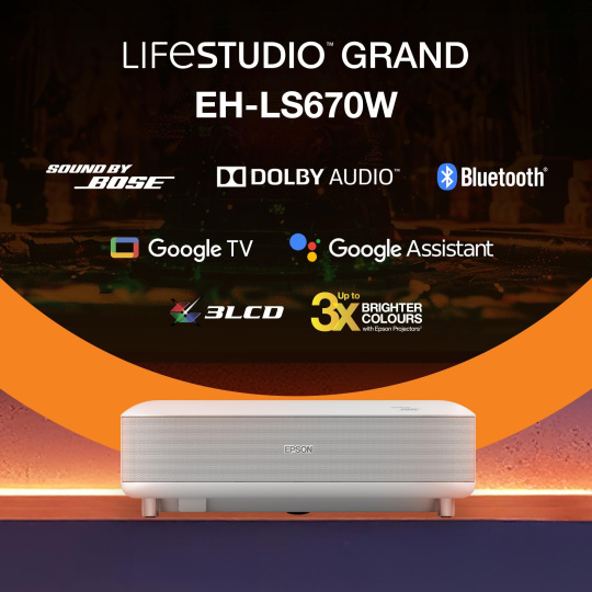 Epson Lifestudio Grand – EH-LS670W diamantová bílá, 4K PRO-UHD, 3600lm, HDMI, USB, Google TV, 240Hz