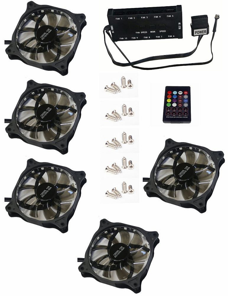 EUROCASE ventilátor RGB 120mm (FullControl spot Led), set 5ks + controller