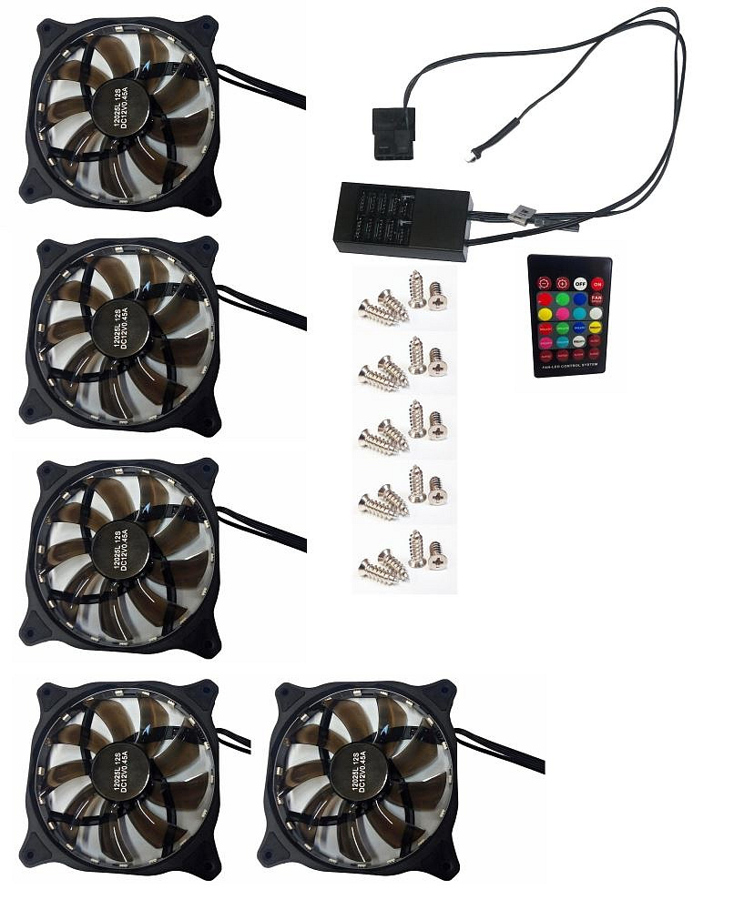 EUROCASE ventilátor RGB 120mm (spot Led), set 5ks + controller