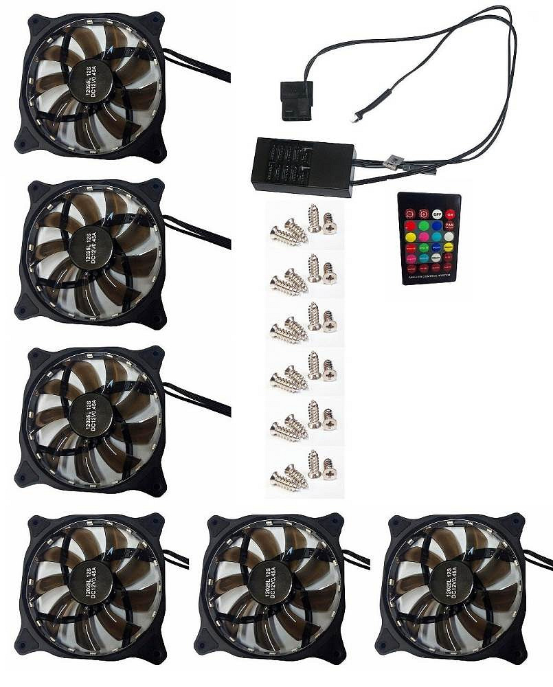 EUROCASE ventilátor RGB 120mm (spot Led), set 6ks + controller