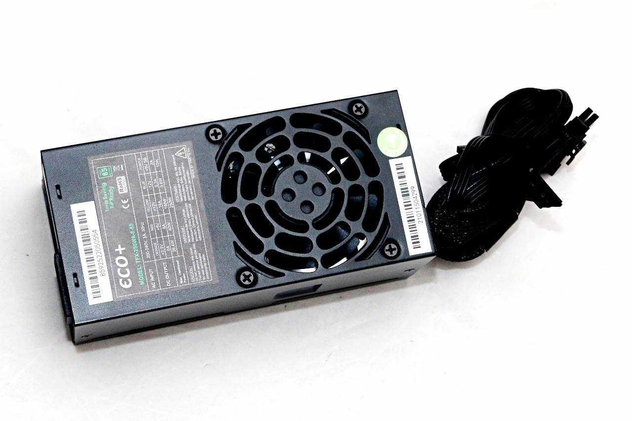 Napájecí zdroj TFX formátu s výkonem 250 W. Je osazen ventilátorem 80 mm, jehož otáčky jsou řízeny termoregulací. Zdroj vyhovuje požadavkům na elektrickou bezpečnost a elektromagnetickou kompatibilitu (EMC). Je vybaven elektronickými obvody, chránícími zdroj v případě přetížení/zkratu výstupu.