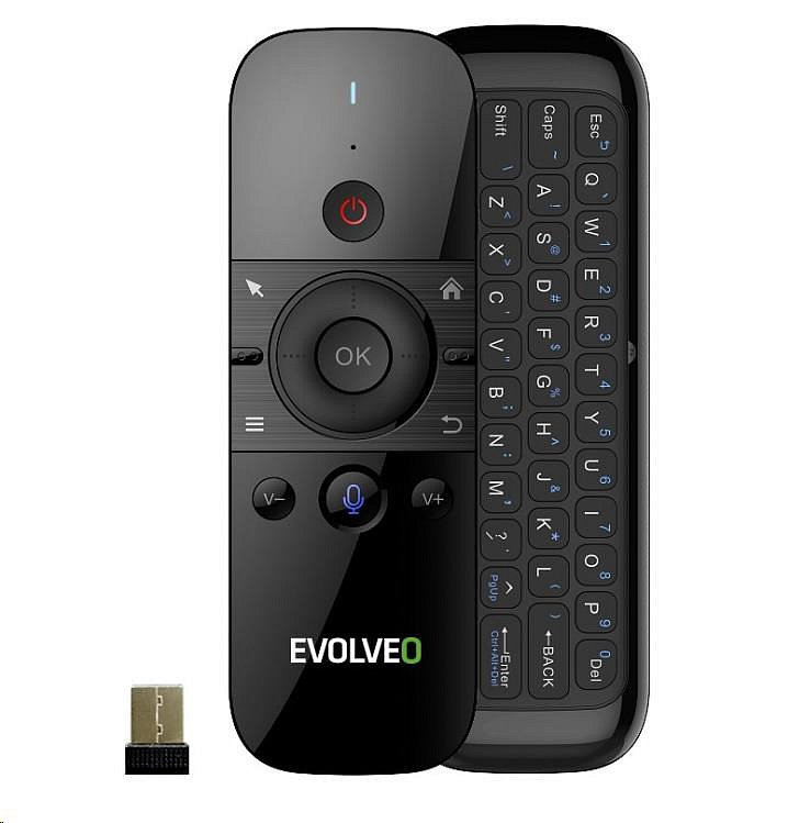 | Obsah balení | - Ovladač EVOLVEO FlyMotion D1 - 2.4 GHz USB adaptér - bezdrátový přijímač/vysílač - Napájecí kabel - Uživatelský manuál |