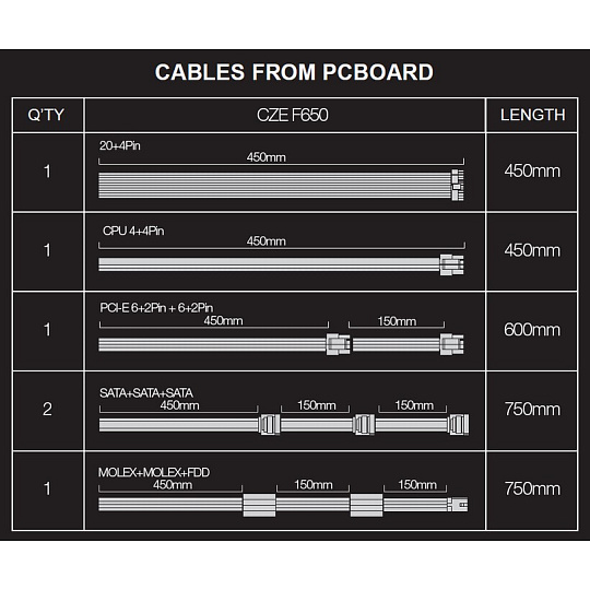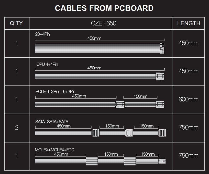 • PCI-E (6+2) +(6+2)pin (450+150mm)