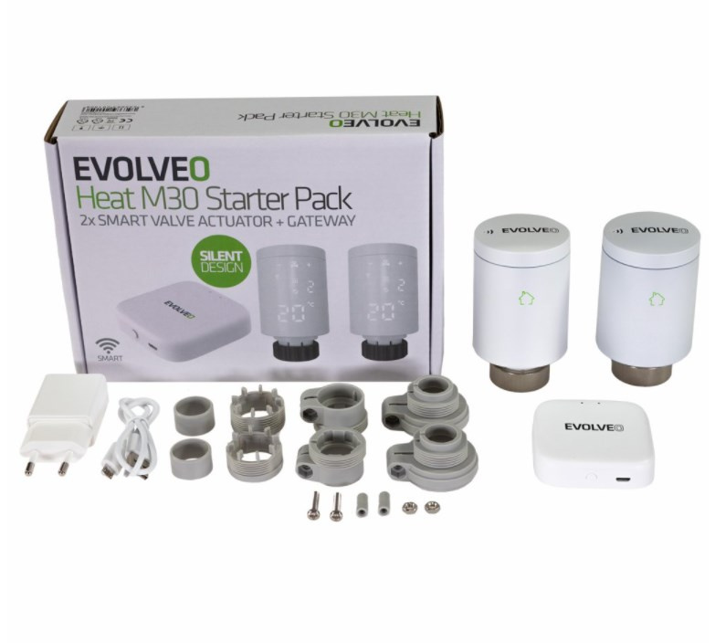 EVOLVEO Heat M30 Starter Pack, 2× chytrá termostatická hlavice na radiátor & centrální jednotka