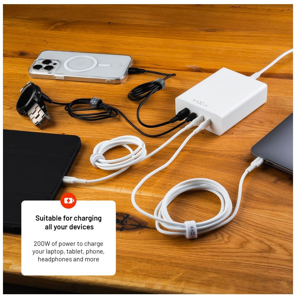 FIXED Charging Station GaN nabíjecí stanice (3x USB-C) s Power Delivery 3.0, 200W, bílá