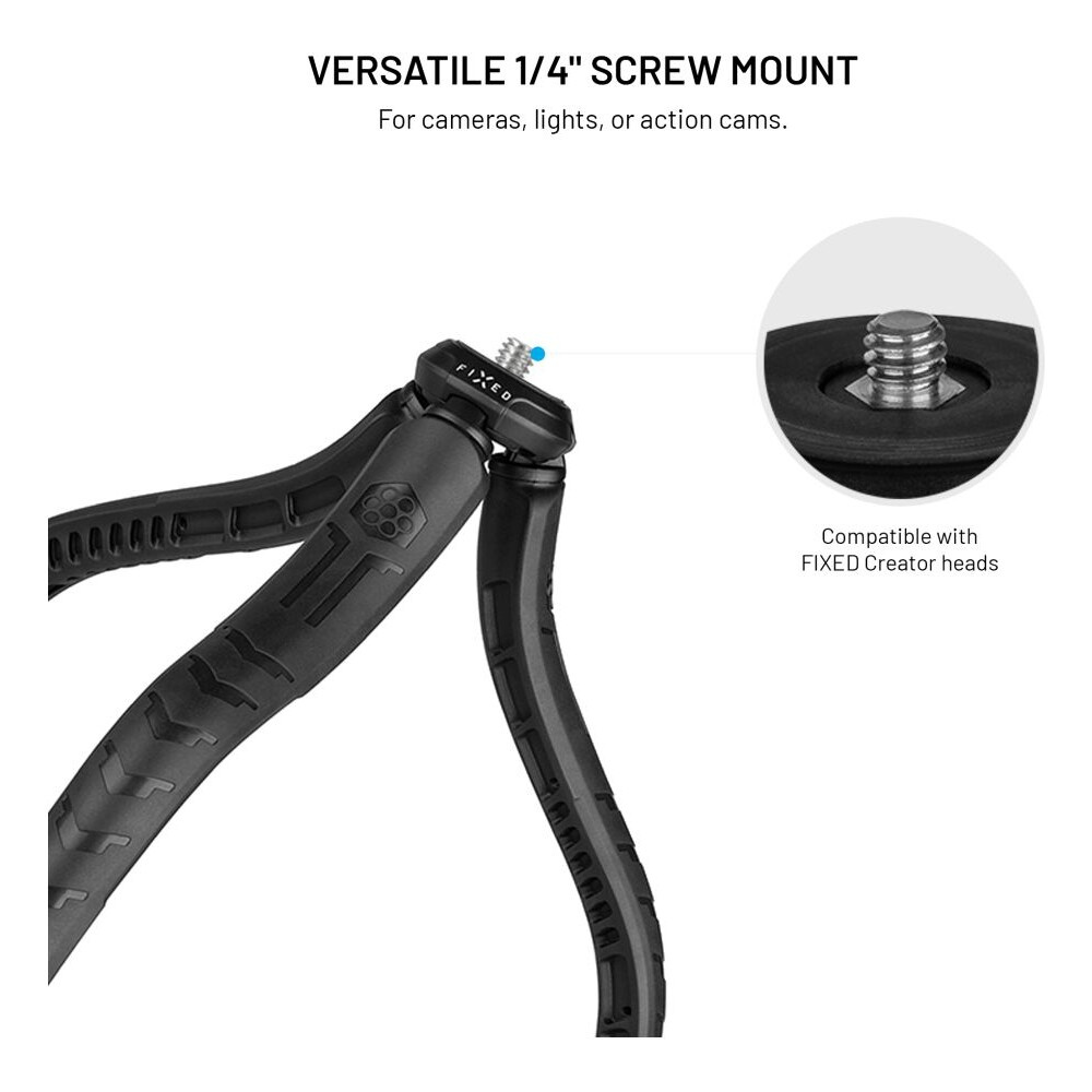 FIXED Creator flexibilní stativ s 1/4" držákem na telefon, černý