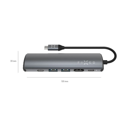 FIXED HUB Pro 6v1 USB-C hliníkový hub pro notebooky a tablety šedý
