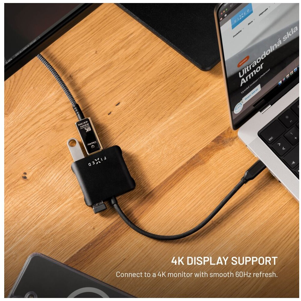 FIXED HUB Quadri hliníkový USB-C hub pro notebooky, 140W, PD 3.1, vesmírně černý