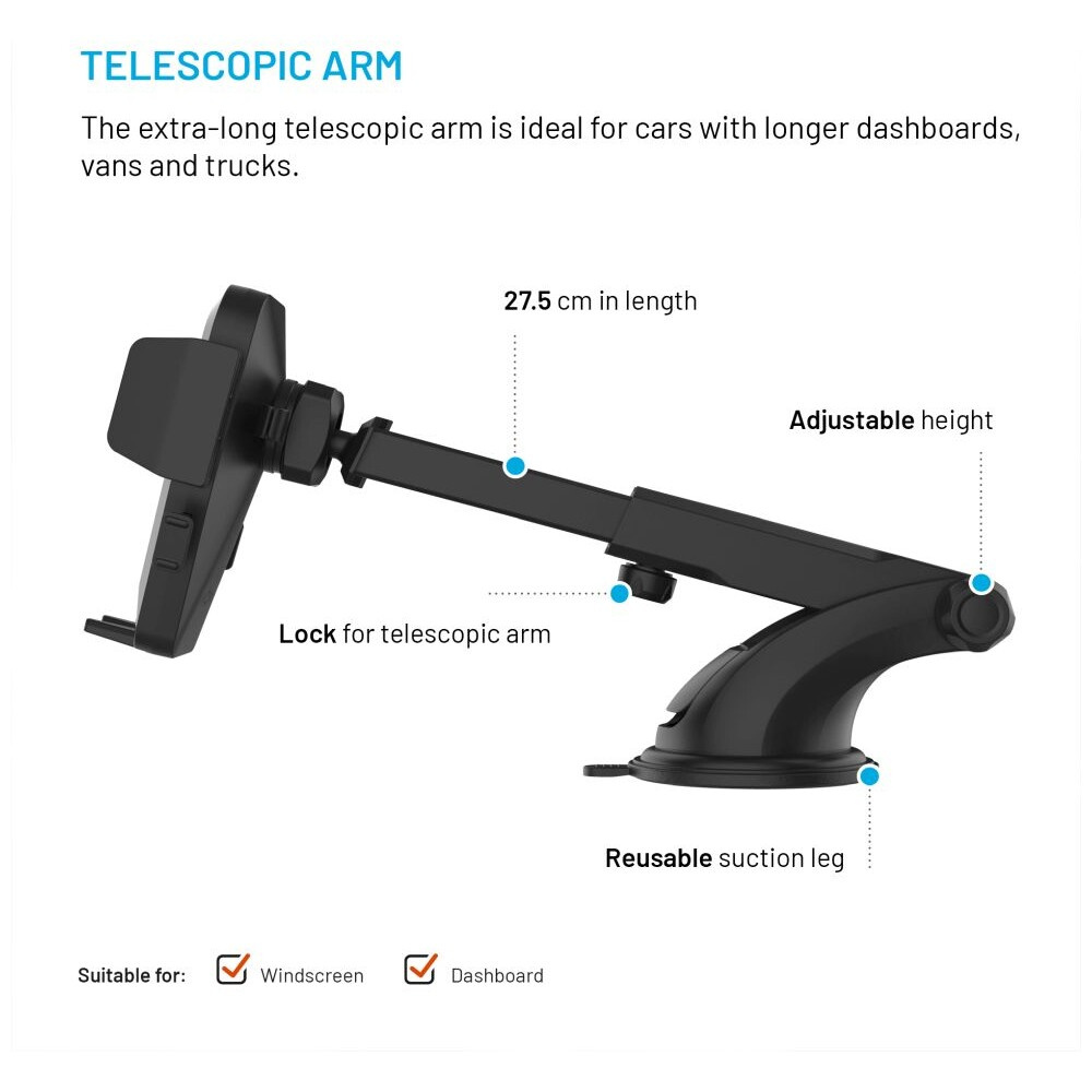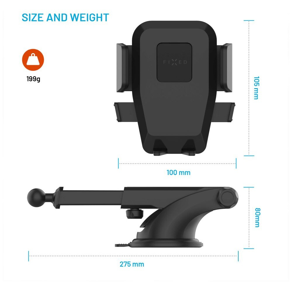 FIXED Iconiq XXL univerzální držák do auta s přísavkou na sklo nebo na palubní desku černý