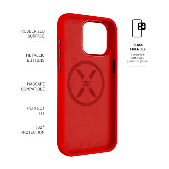 FIXED MagFlow silikonový kryt s MagSafe Apple iPhone 16 Pro červený