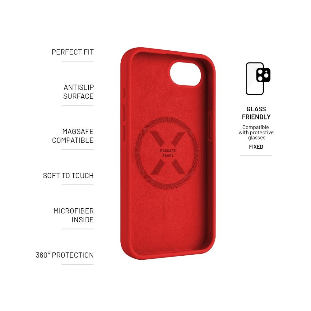 FIXED MagFlow silikonový kryt s MagSafe Apple iPhone 16e červený