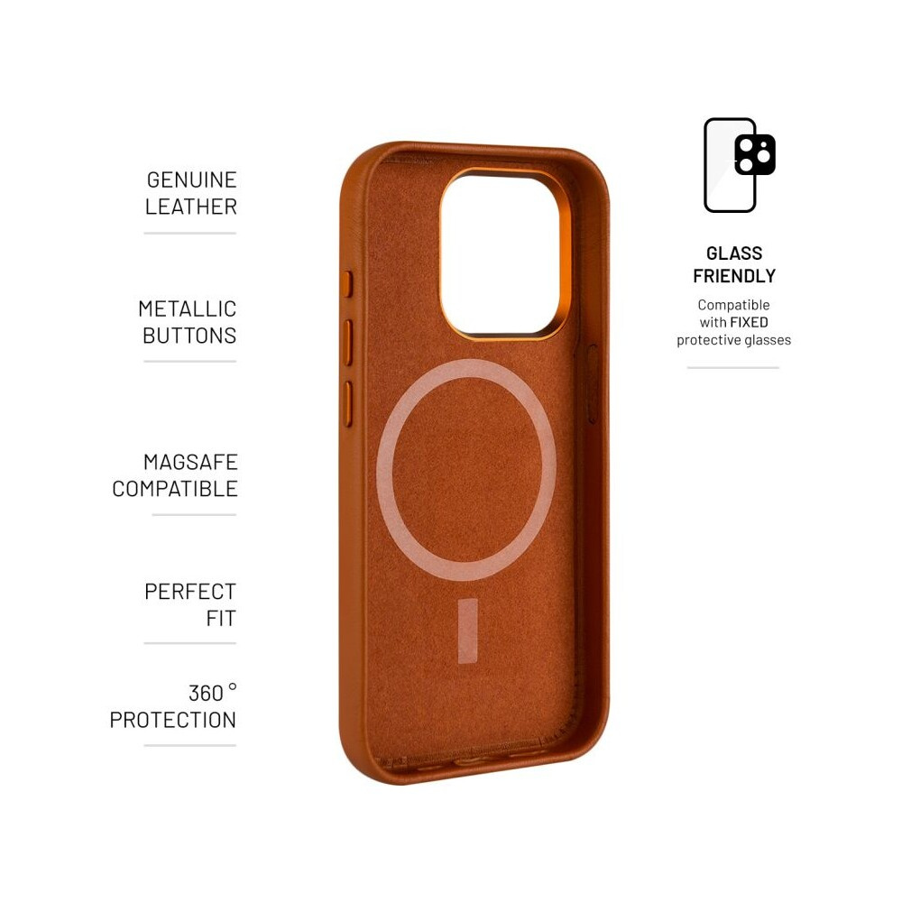 FIXED MagLeather kožený kryt s MagSafe Apple iPhone 16 hnědý