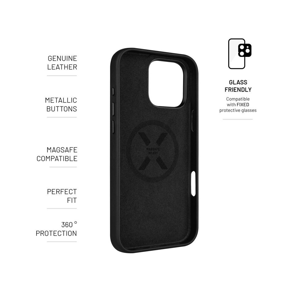 FIXED MagLeather kožený kryt s MagSafe Apple iPhone 16 Pro Max černý