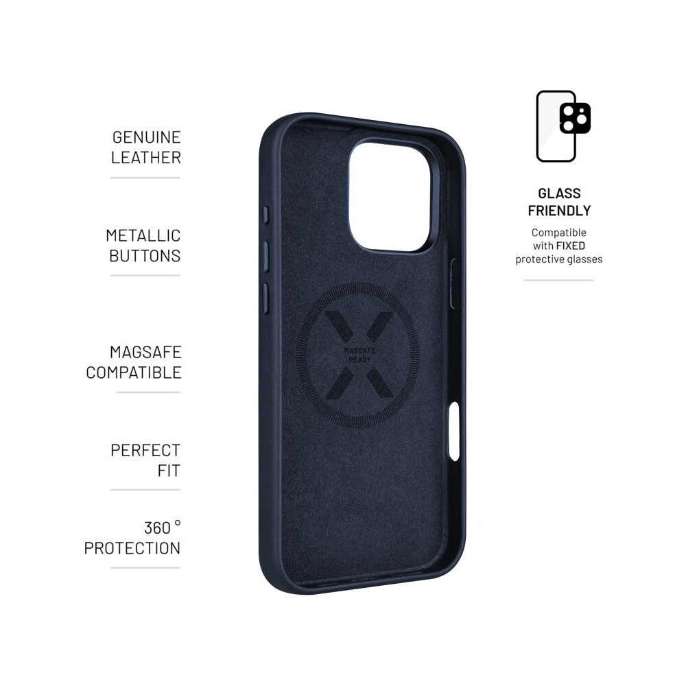 FIXED MagLeather kožený kryt s MagSafe Apple iPhone 16 Pro Max modrý