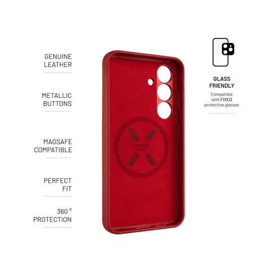 FIXED MagLeather kožený kryt s MagSafe Samsung Galaxy S25 červený