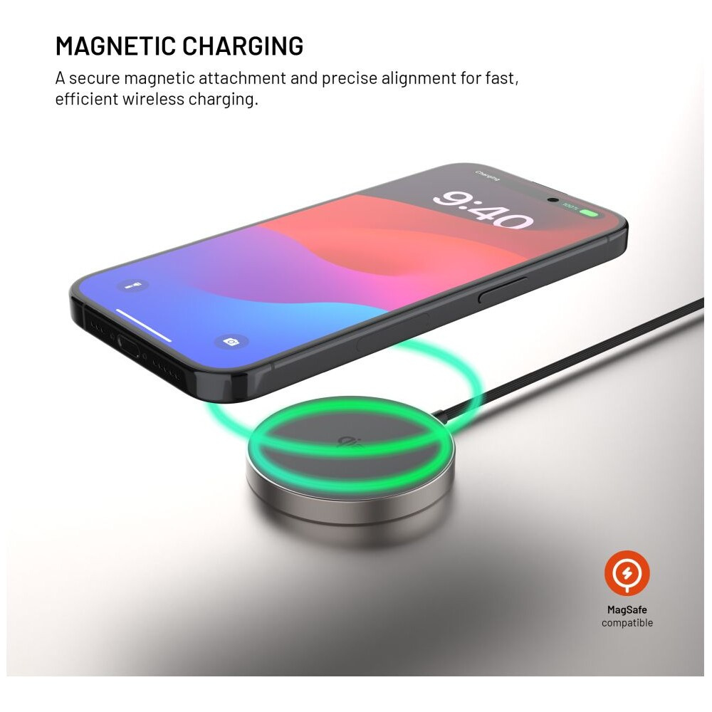 FIXED MagPad Slim MagSafe nabíječka s Qi2, 15W, titanová