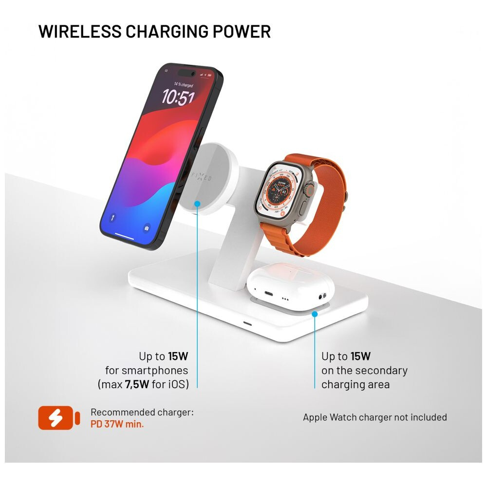 FIXED MagPowerstation 3v1 bezdrátový nabíječka s MagSafe bílá