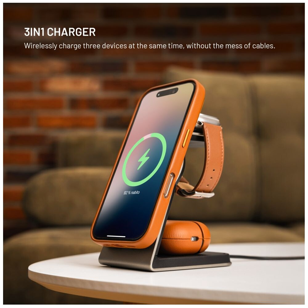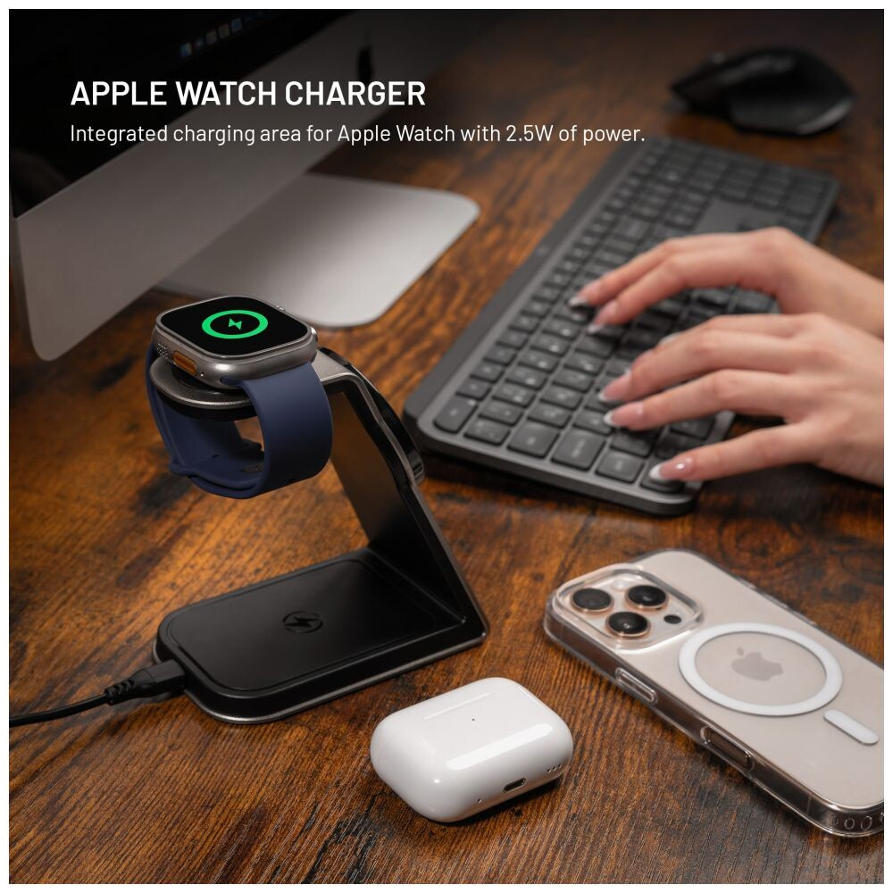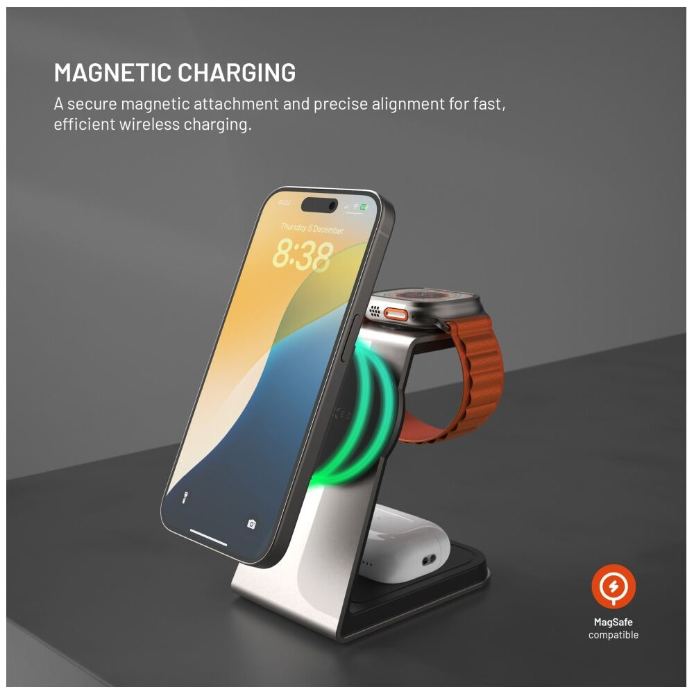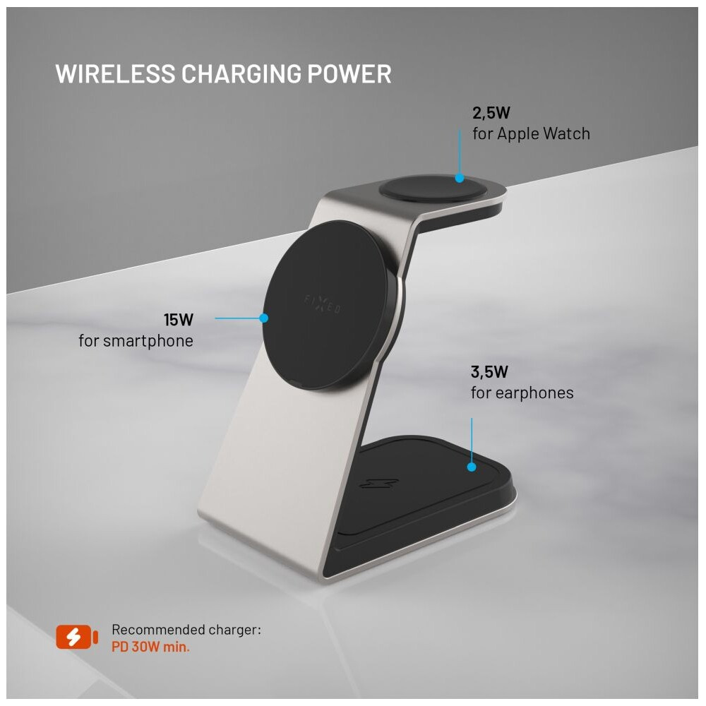 FIXED MagPowerstation Alu 2 nabíjecí stojánek s Qi2/MagSafe (15W) titanový