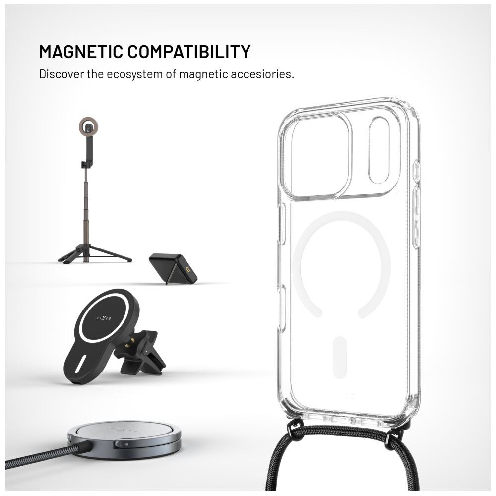 FIXED MagPure Neck kryt s černou šňůrkou na krk pro Apple iPhone 17 Pro