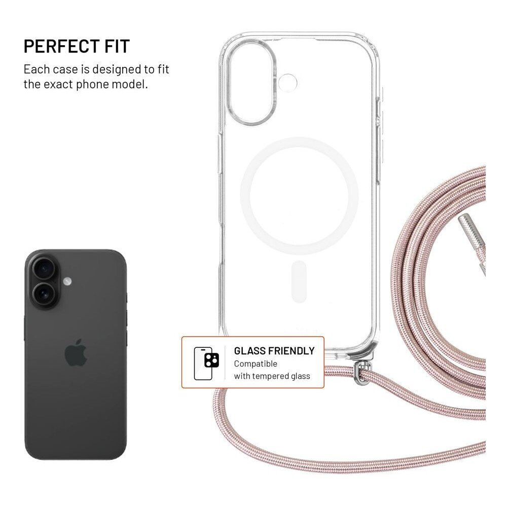 FIXED MagPure Neck kryt s růžovou šňůrkou na krk pro Apple iPhone 17