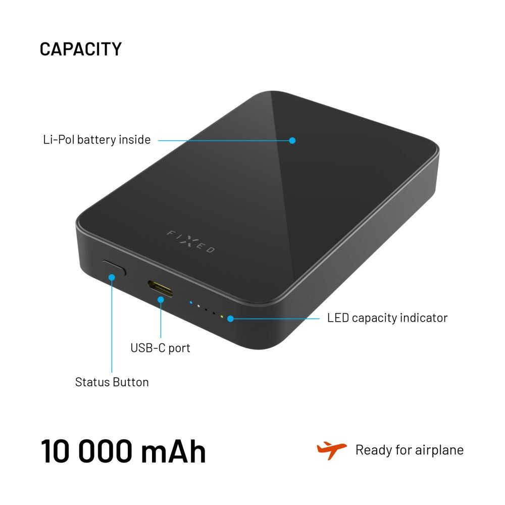 FIXED MagZen 10 Crystal MagSafe/Qi2 powerbanka, 10000mAh, černá