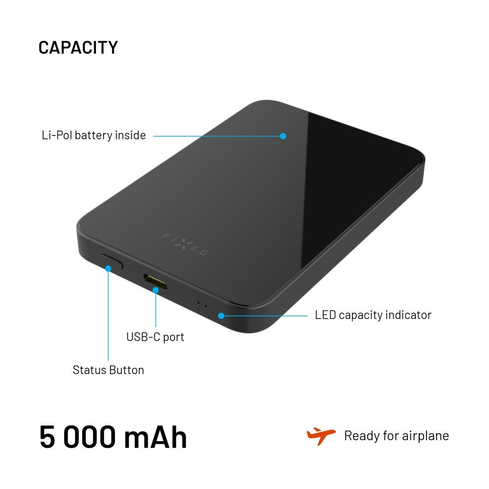 FIXED MagZen 5 Crystal MagSafe/Qi2 powerbanka, 5000mAh, černá