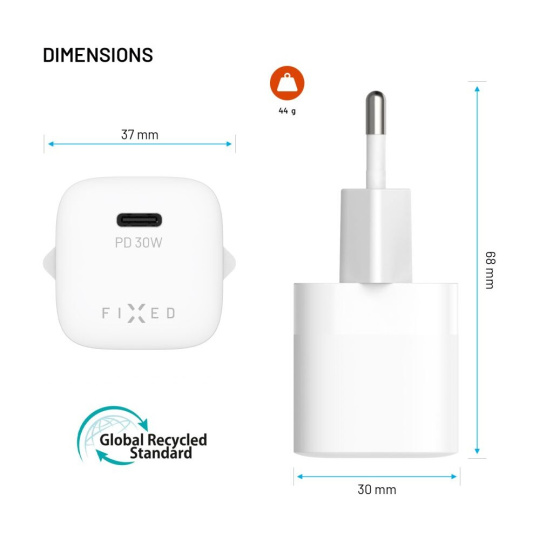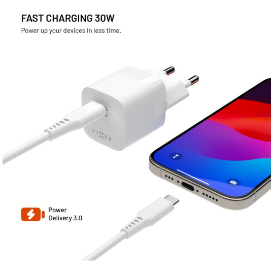 FIXED Mini GaN nabíječka s USB-C a PD, 30W, bílá