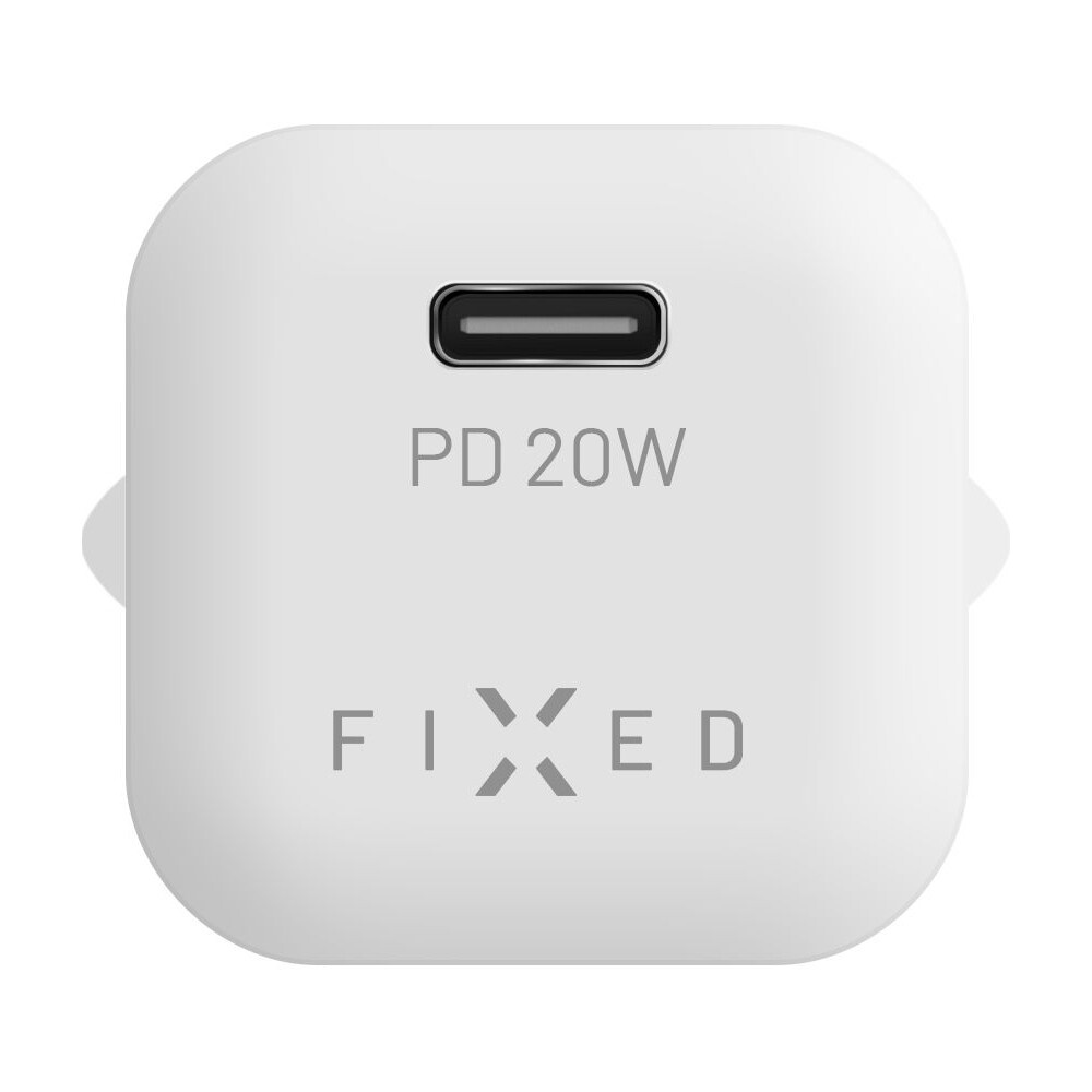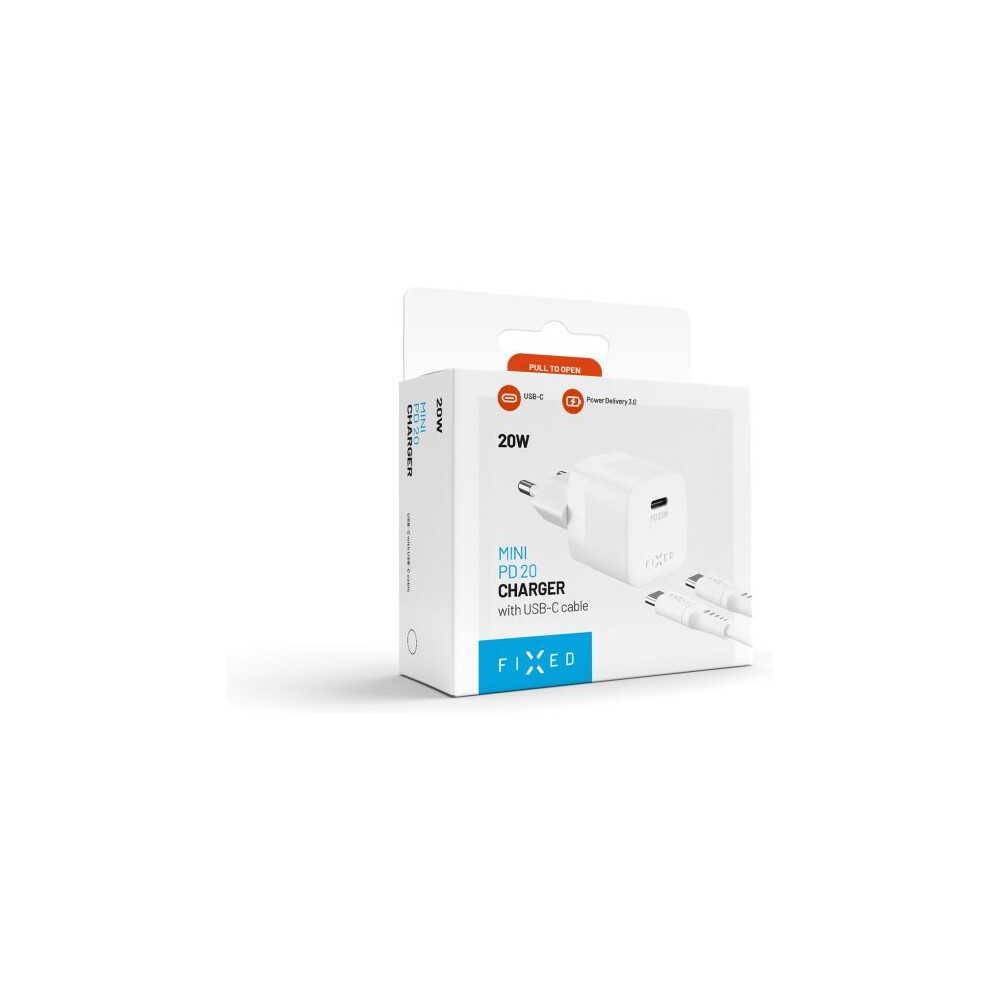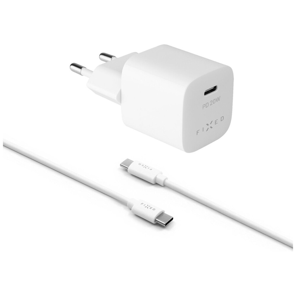 FIXED Mini nabíječka s USB-C a USB-C/USB-C kabelem, PD, 1 m, 20W, bílý