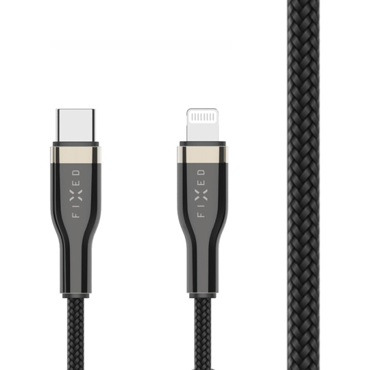 FIXED opletený kabel USB-C/Lightning (PD), MFi, 0.5m, černý