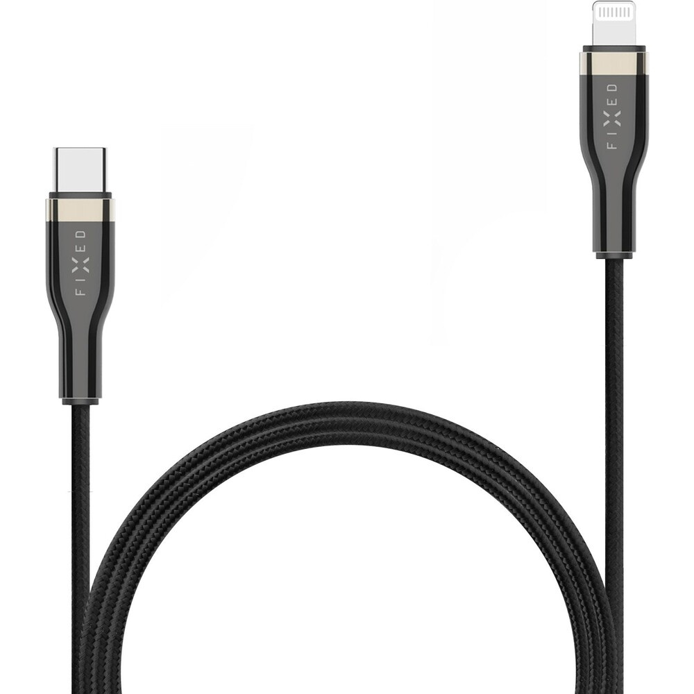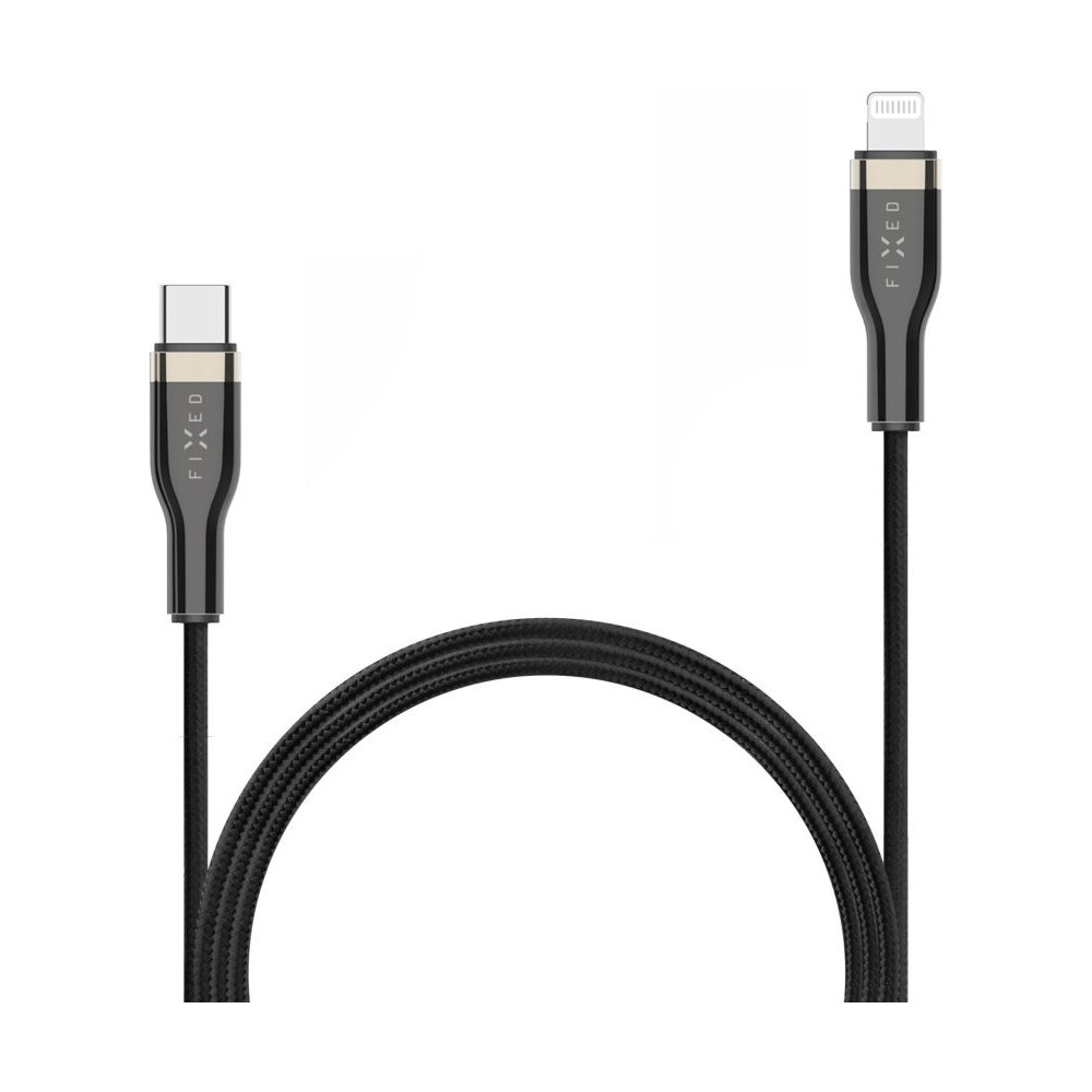 FIXED opletený kabel USB-C/Lightning (PD), MFi, 2m, černý