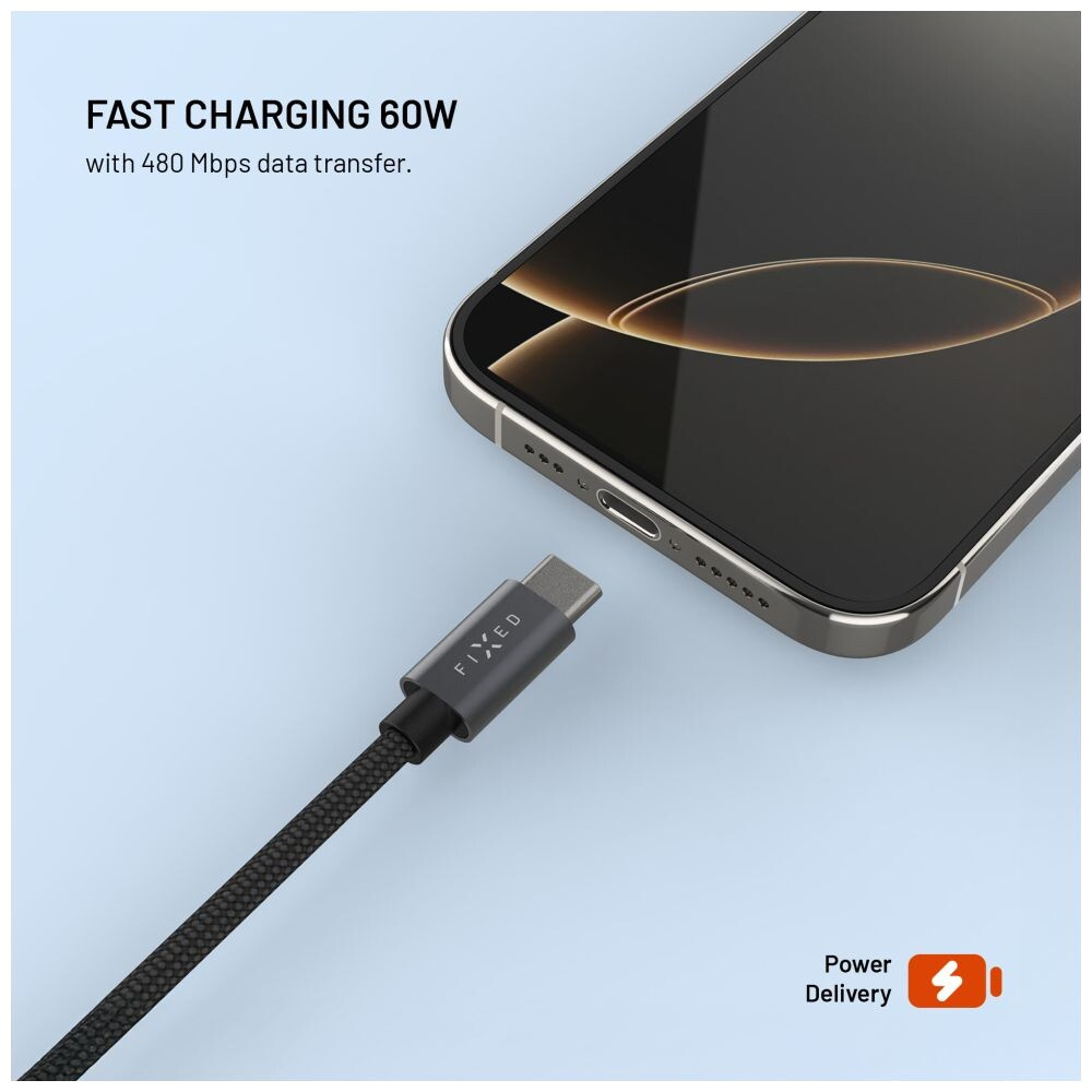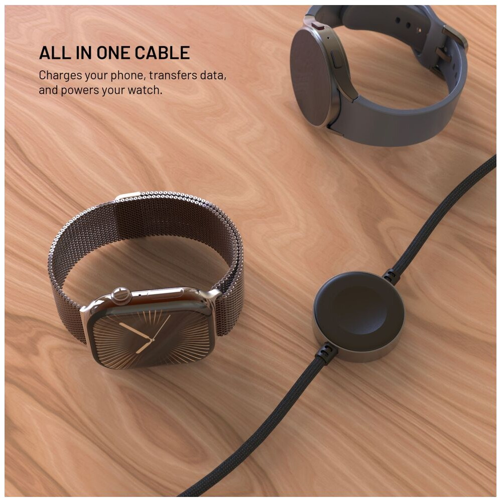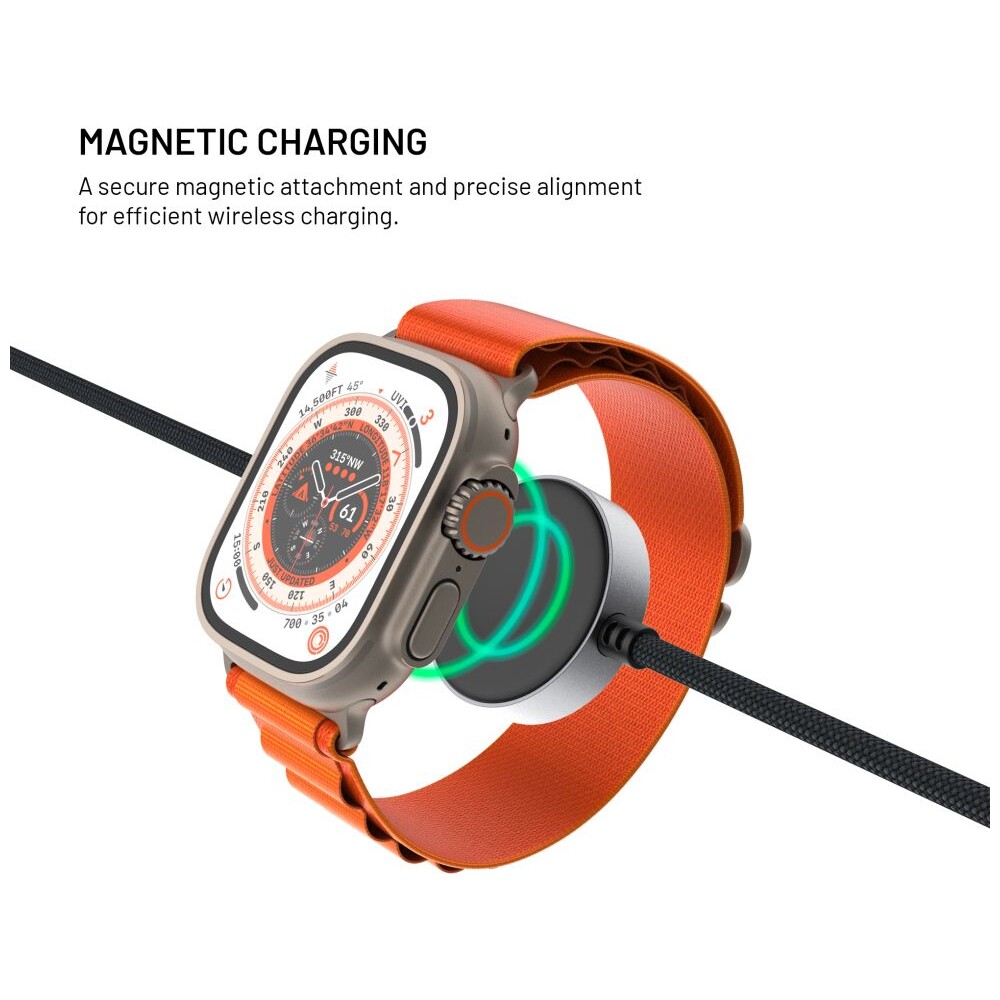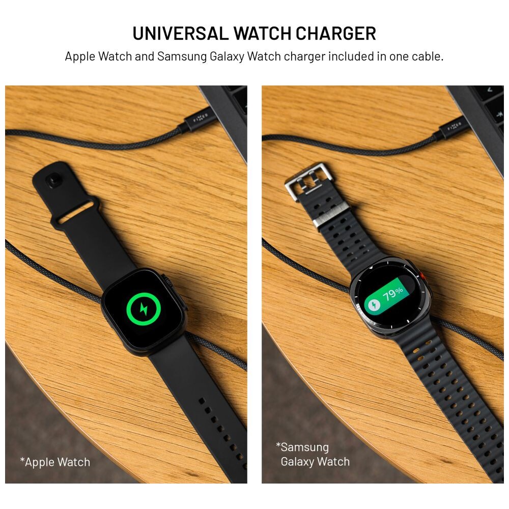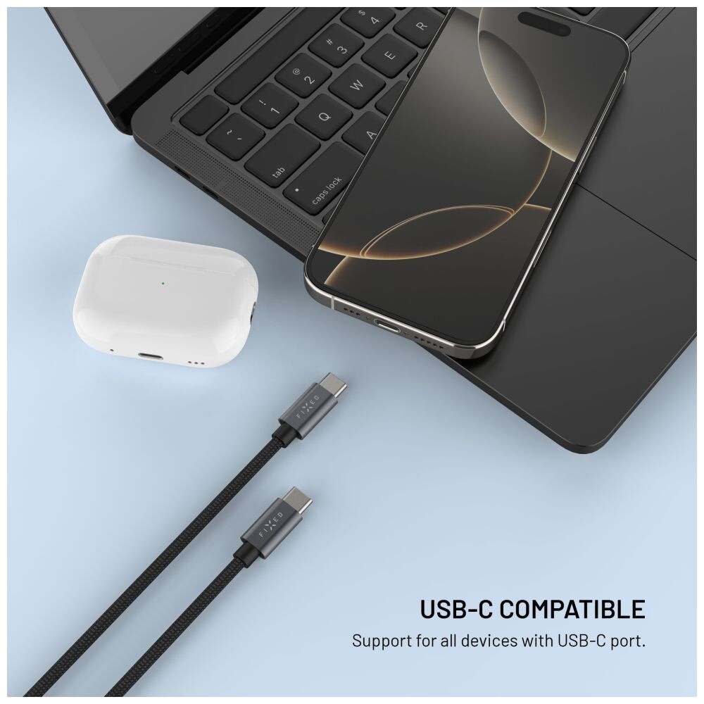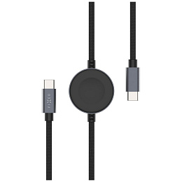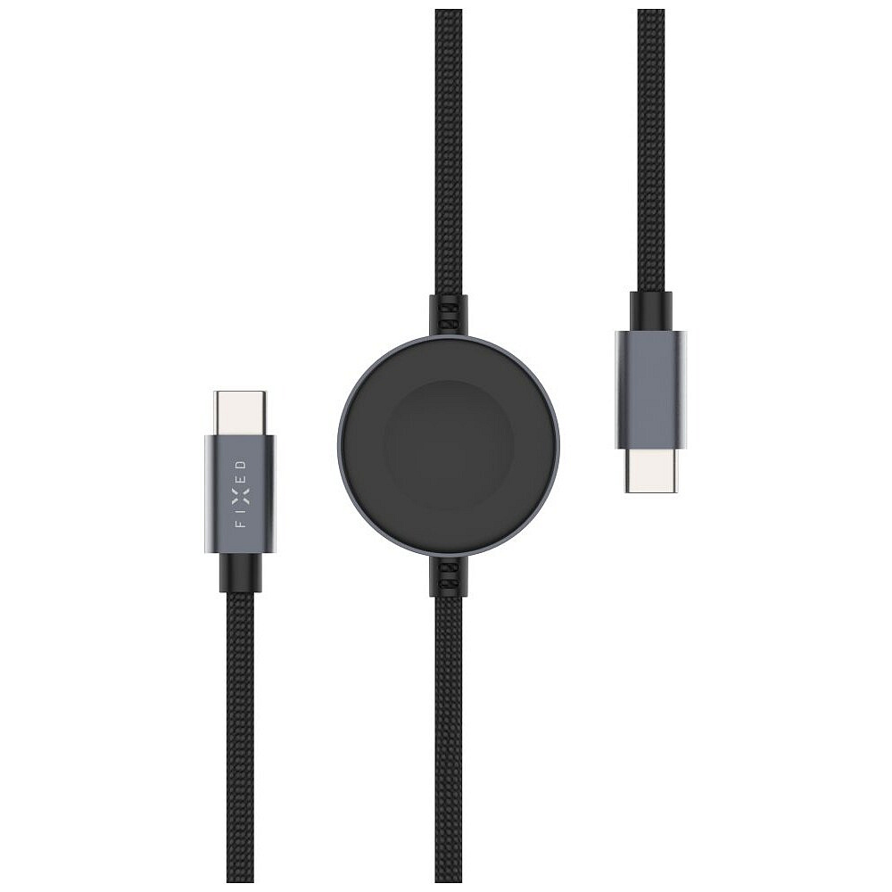 FIXED Power Watch Cable USB-C/USB-C a Apple/Samsung Watch nabíječkou, 1.5m, PD 60W šedý