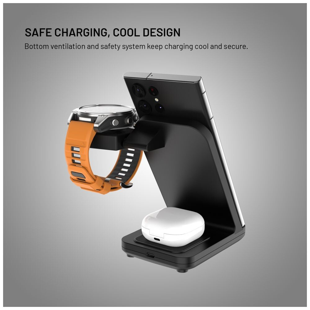 FIXED Powerstation stojánek pro Garmin s nabíjením až pro 3 zařízení, černý