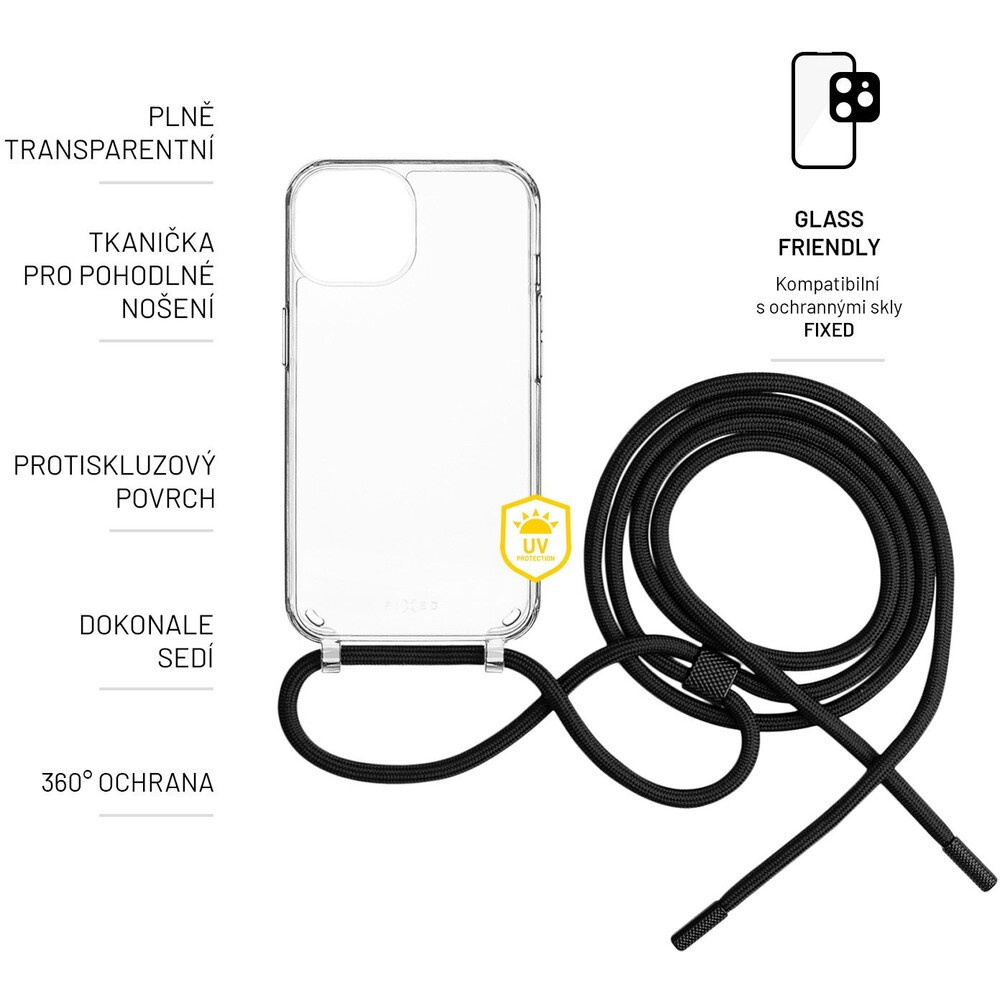 FIXED Pure Neck kryt s černou šňůrkou na krk pro Apple iPhone 7/8/SE (2020/2022)