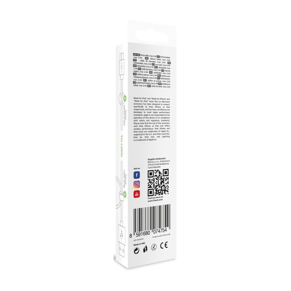 FIXED Rapid Charge USB-A/USB-C napájecí kabel 1m bílý