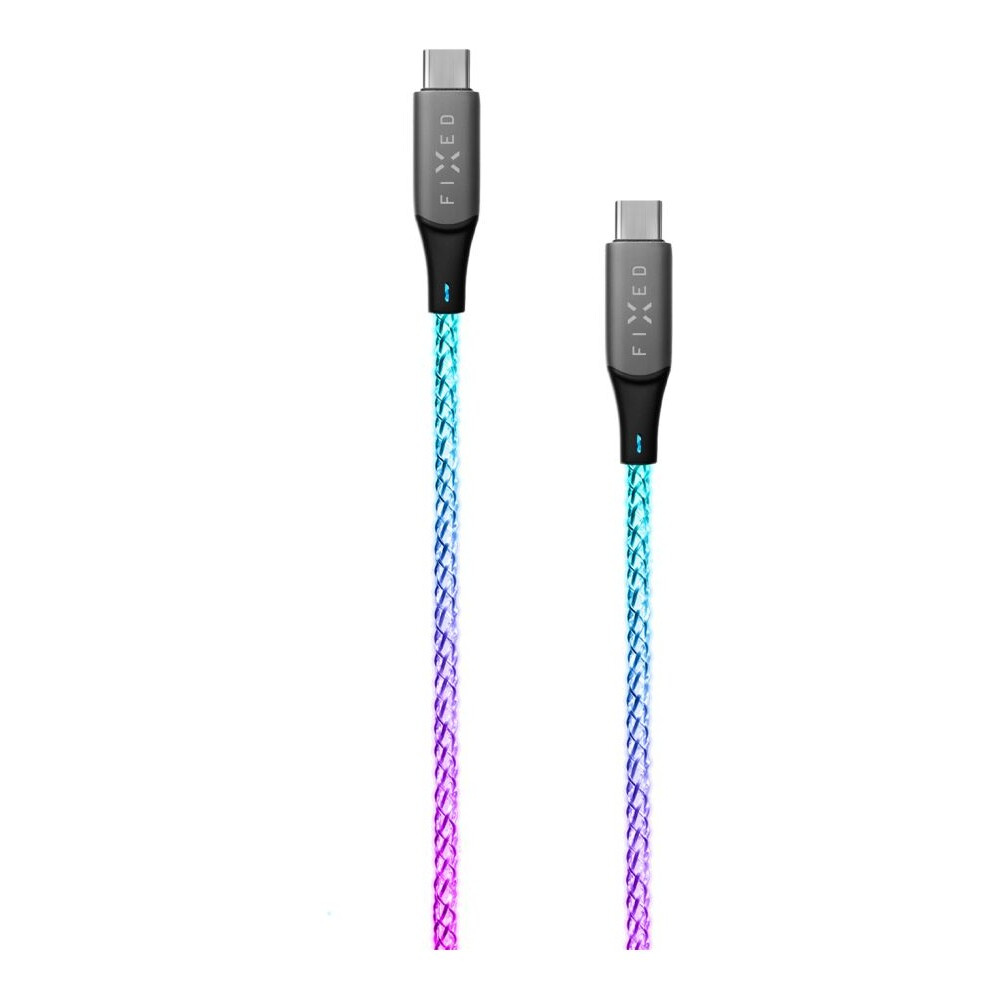 FIXED USB-C/USB-C svítící napájecí kabel 60W 1,2m duhový