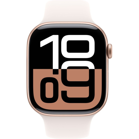 Apple Watch Series 10 Cellular 46mm Růžově zlatý hliník se světle ruměným sportovním řemínkem S/M