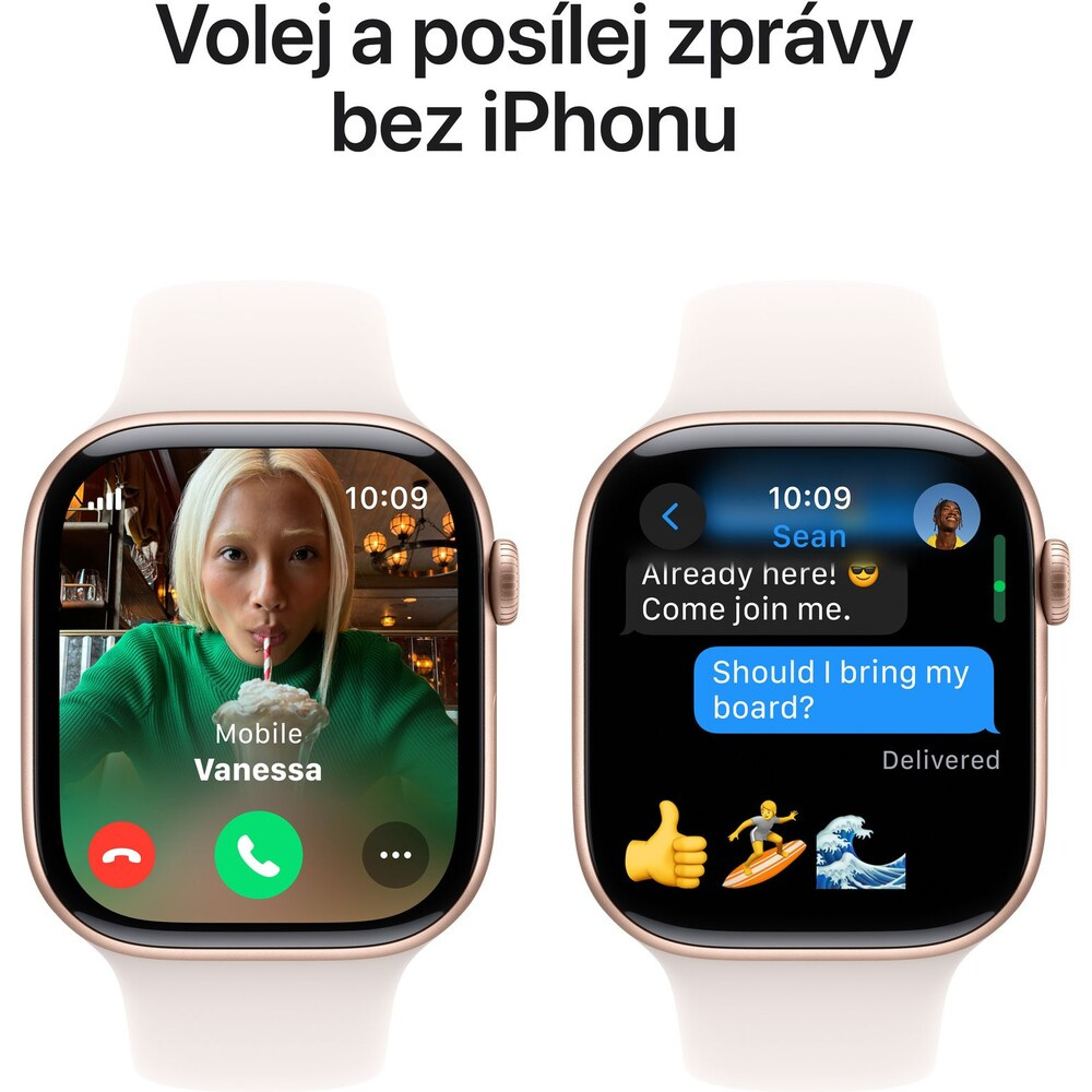 Apple Watch Series 10 Cellular 46mm Růžově zlatý hliník se světle ruměným sportovním řemínkem S/M