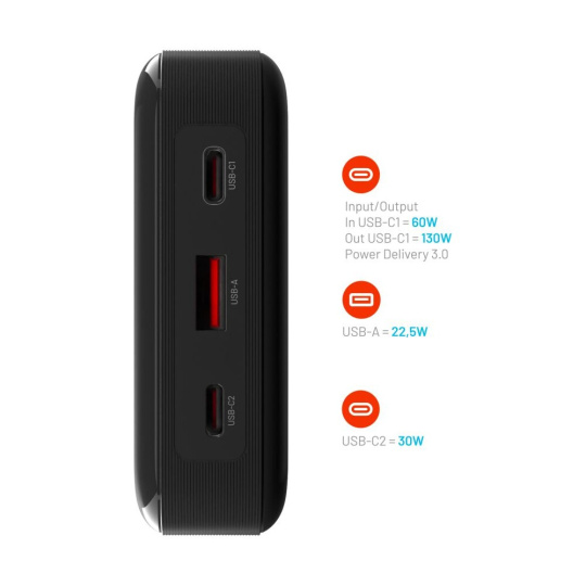FIXED Zen 20 Pro powerbanka s LCD displejem (130W), 20000 mAh, černá