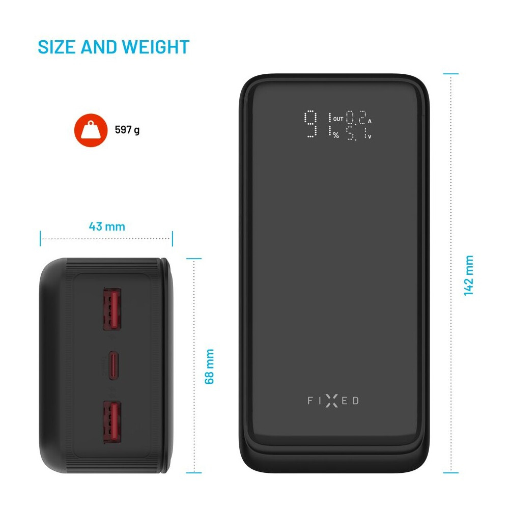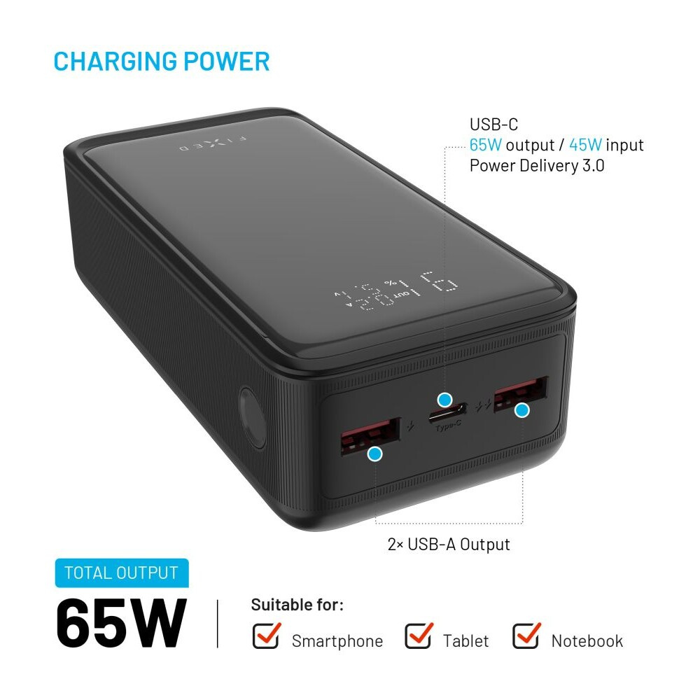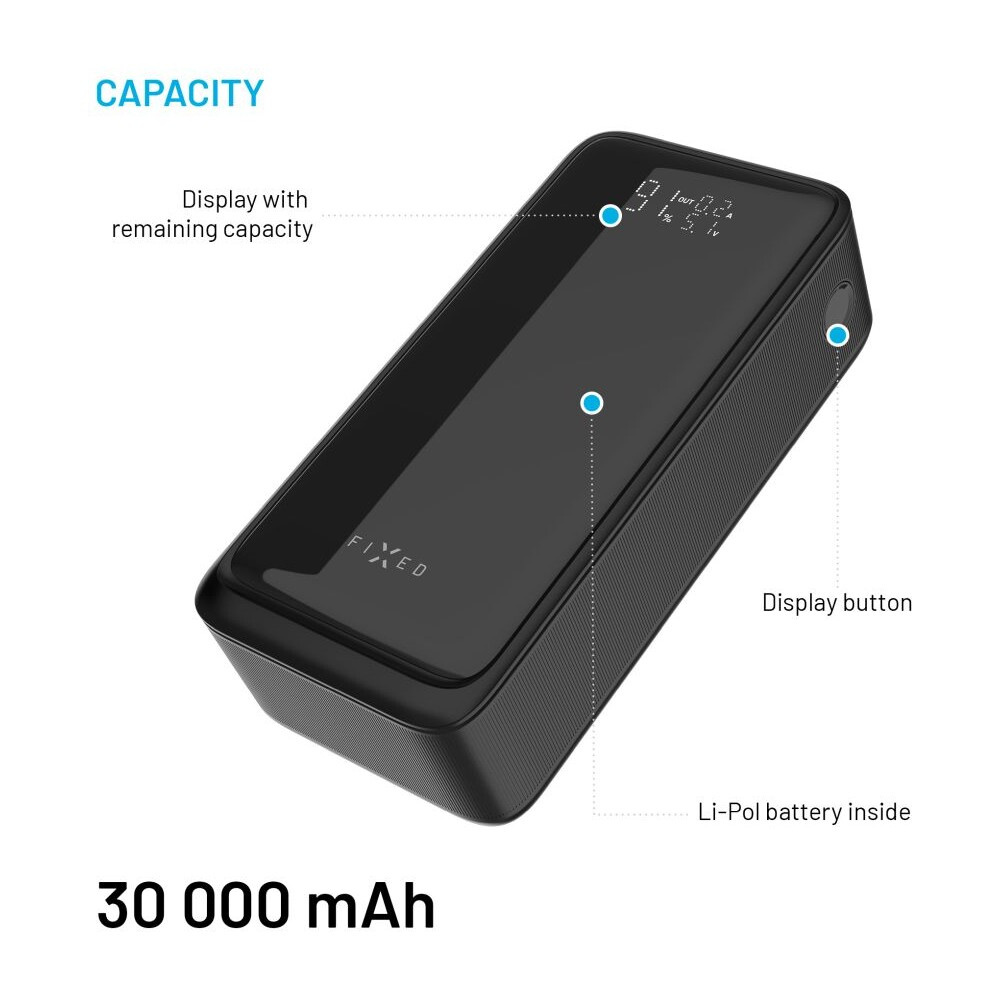FIXED Zen2 30 Plus powerbanka s LCD displejem a PD 65W, 30 000 mAh, černá