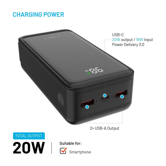 FIXED Zen2 30 powerbanka s LCD displejem a PD 20W, 30 000 mAh, černá