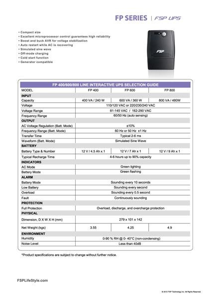 Fortron UPS FSP FP 800, 800 VA, line interactive