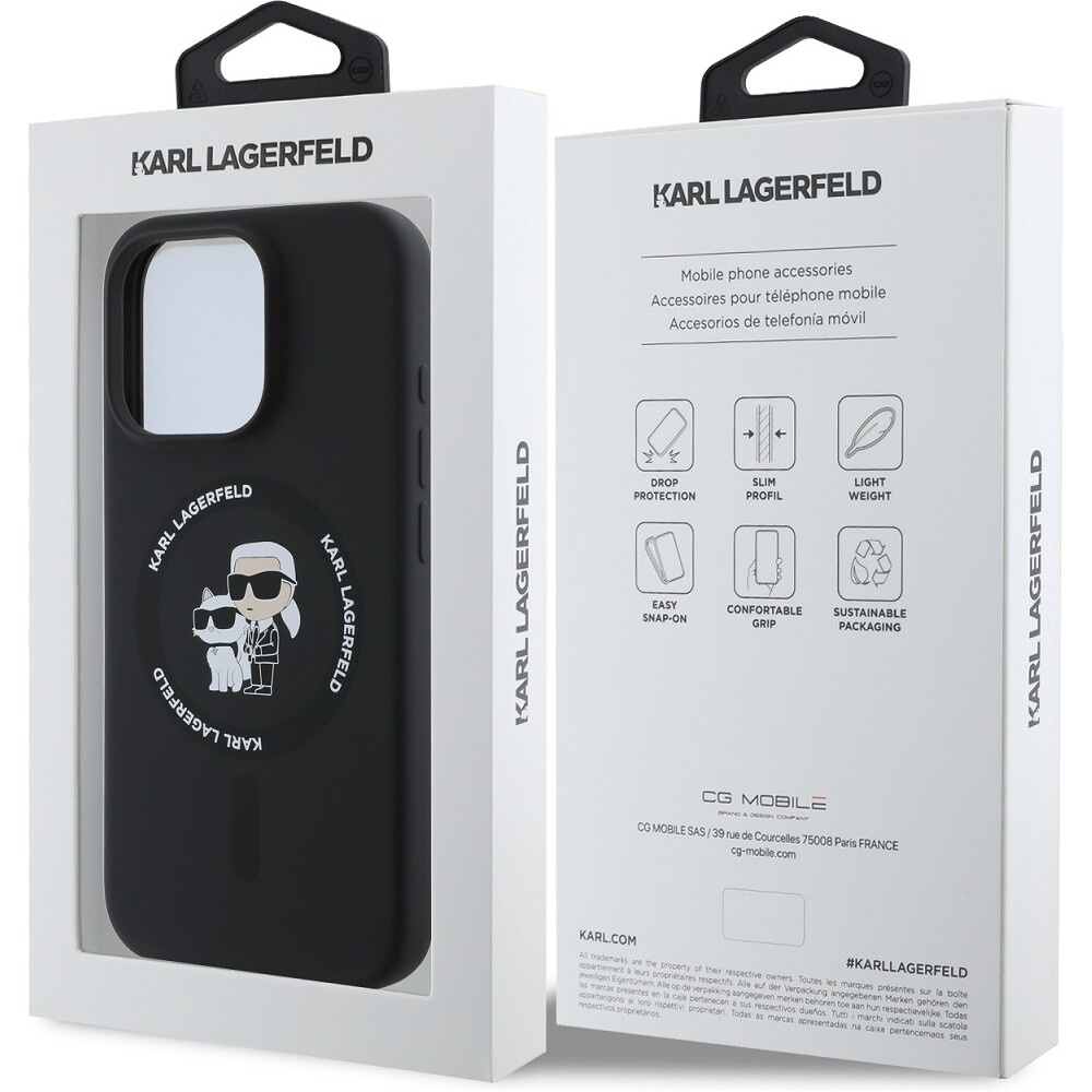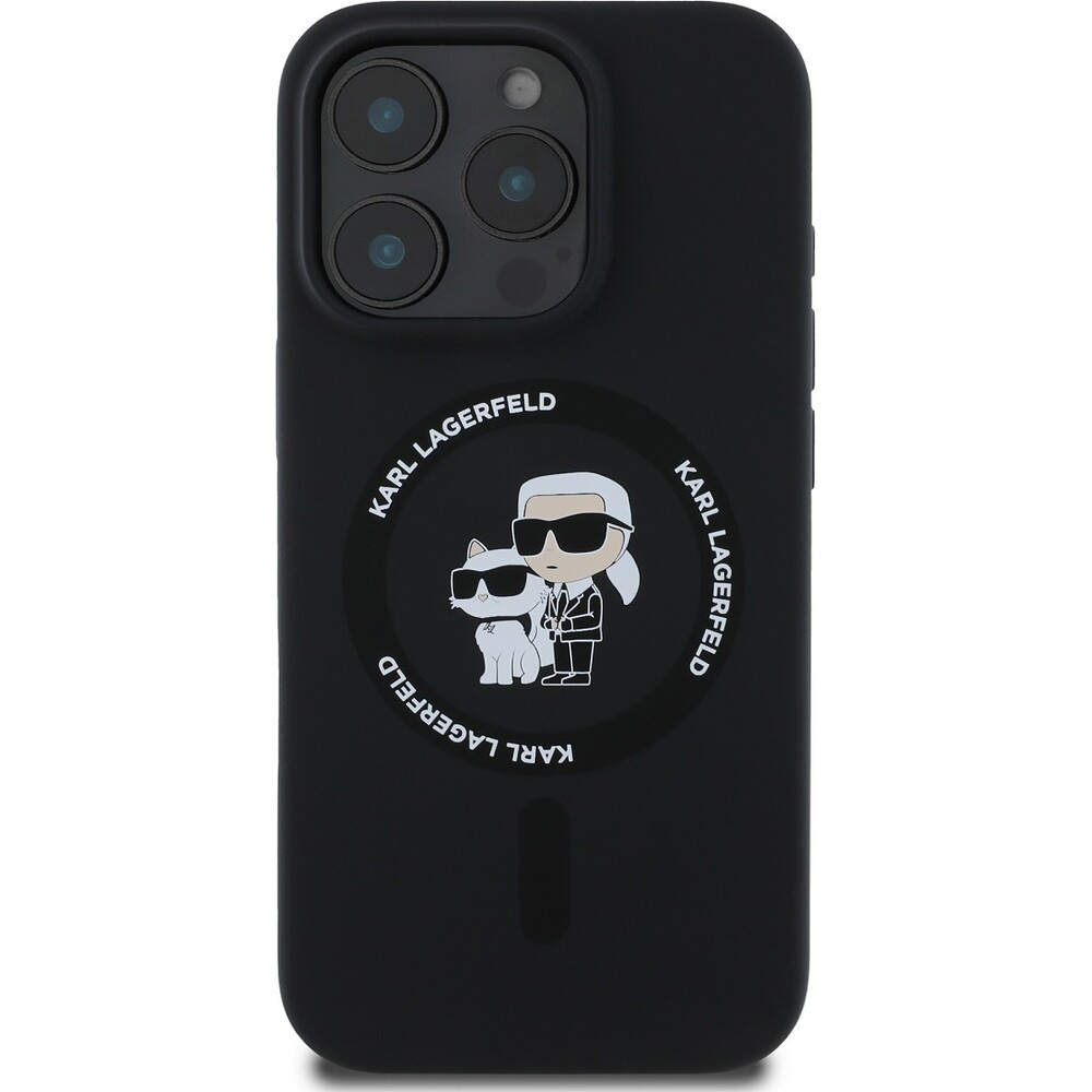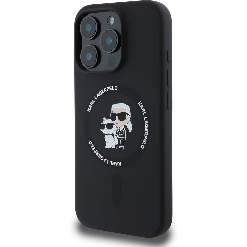 Karl Lagerfeld Liquid Silicone Karl and Choupette MagSafe kryt iPhone 16 Pro Max černý