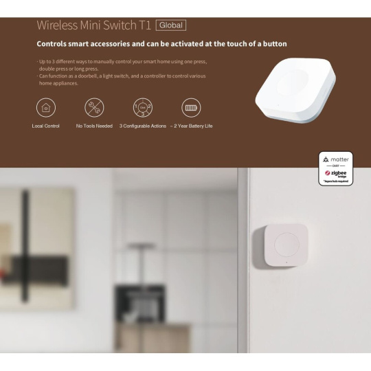 AQARA Wireless Mini Switch T1 - Zigbee 3.0 dálkový ovladač bílý