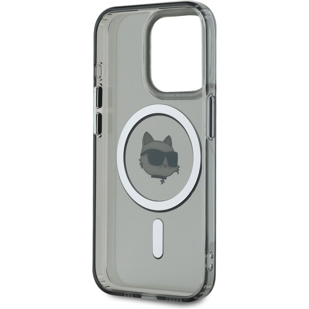 Karl Lagerfeld IML Choupette Head Metal Frame MagSafe zadní kryt pro iPhone 15 Pro černý
