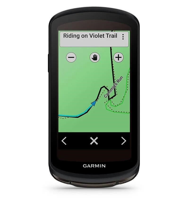 Při navigaci po trase poskytuje Edge podrobné navigační pokyny a navíc i odhad času dojezdu do cíle, do průjezdních bodů v trase a navíc i časy západu a východu Slunce.