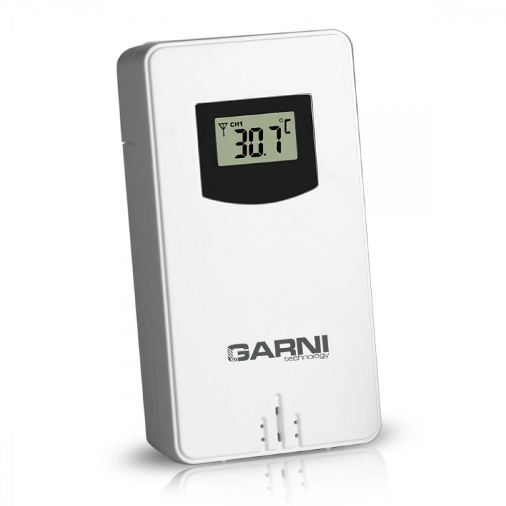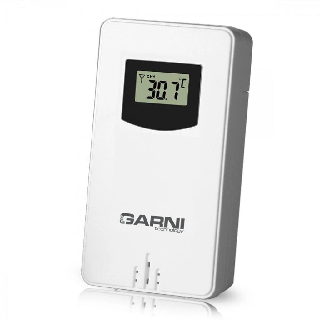 Bezdrátové čidlo pro měření teploty, určeno pro meteorologickou stanici GARNI 365 Arcus vlhkosti odolné, krytí IPX4 (odolné proti stříkající vodě) displej o rozměrech 19 x 11 mm velikost číslic na displeji: teplota 6,5 mm měření teploty 3 kanály maximální RF výkon 10 dBm (10 mW) možnost postavení a zavěšení barva bílá.